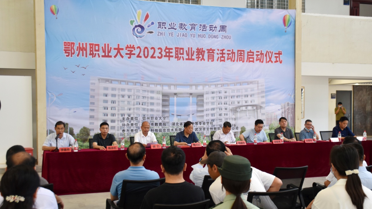 本网讯(记者 双全 何建华)5月15日上午,鄂州职业大学2023年职业教育活动周启动仪式在国家建筑技术实训中心举行,副校长杨殿生,教育局相关部门领导,全市中职学校和部分企业代表,我校相关处室、各院(部)负责人以及师生代表参加启动仪式。