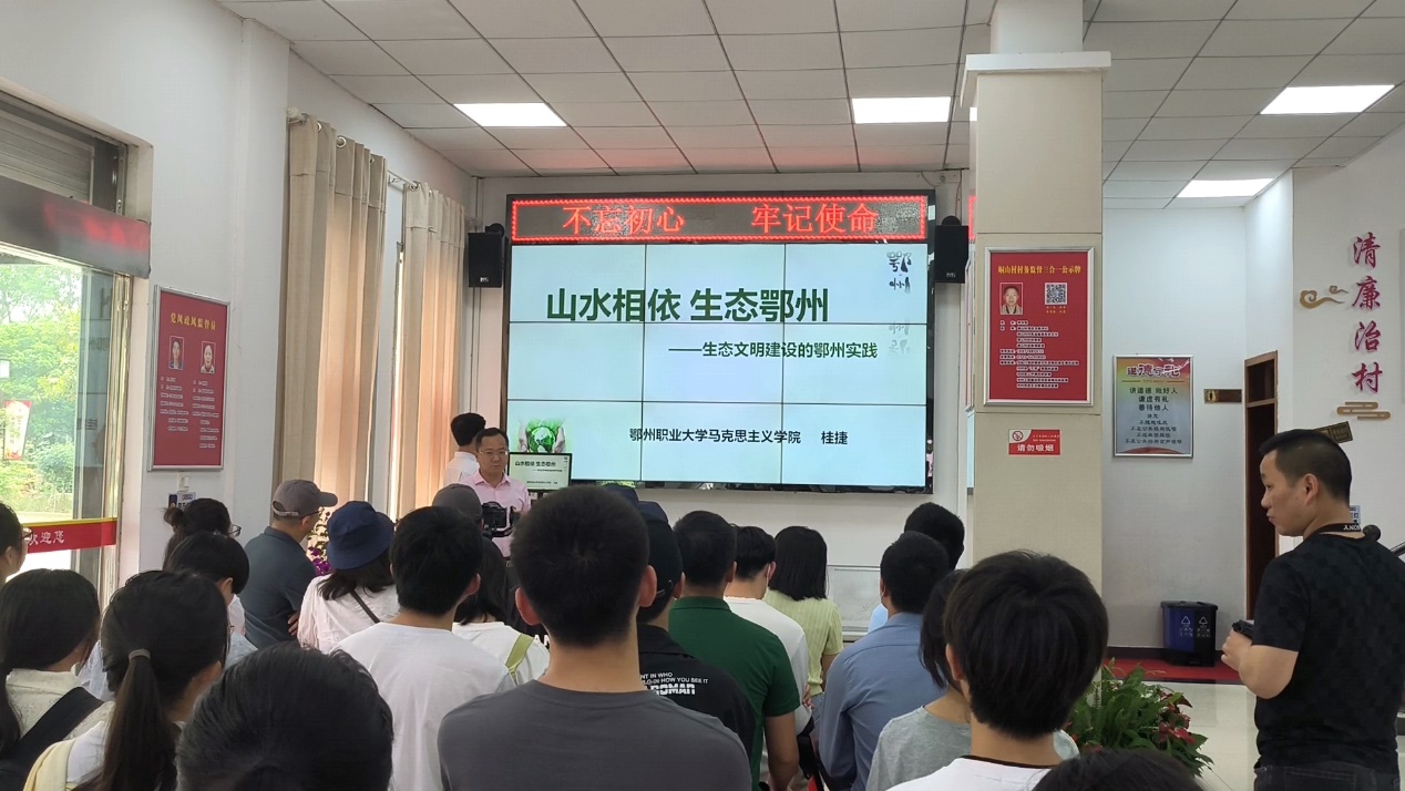 我校马克思主义学院桂捷副教授通过现实事例,从“牢记嘱托 生态保护见成效”、“共抓大保护 一江春水万年青”、“生态文明 乡村振兴”等五个方面,用实地拍摄的照片、视频生动讲述了生态文明建设在鄂州的具体实践。