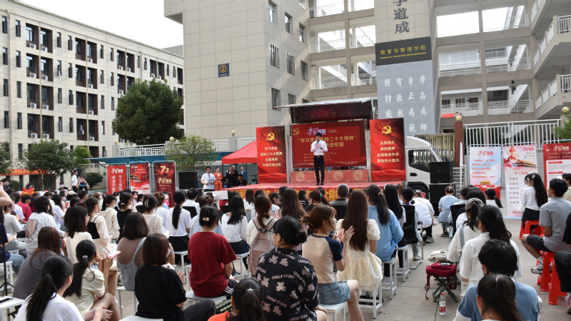 本网讯(通讯员何青/文 记者 双全/摄)5月30日,由市委宣传部主办的“学习强国”大篷车学习贯彻党的二十大精神专题宣讲活动在我校教育管理学院举行。