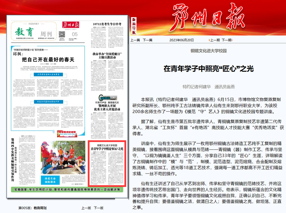 《鄂州日报》新闻来源链接:http://ga.eznews.cn/ezrb/2023/20230620/20230620_005/20230620_005_7.htm