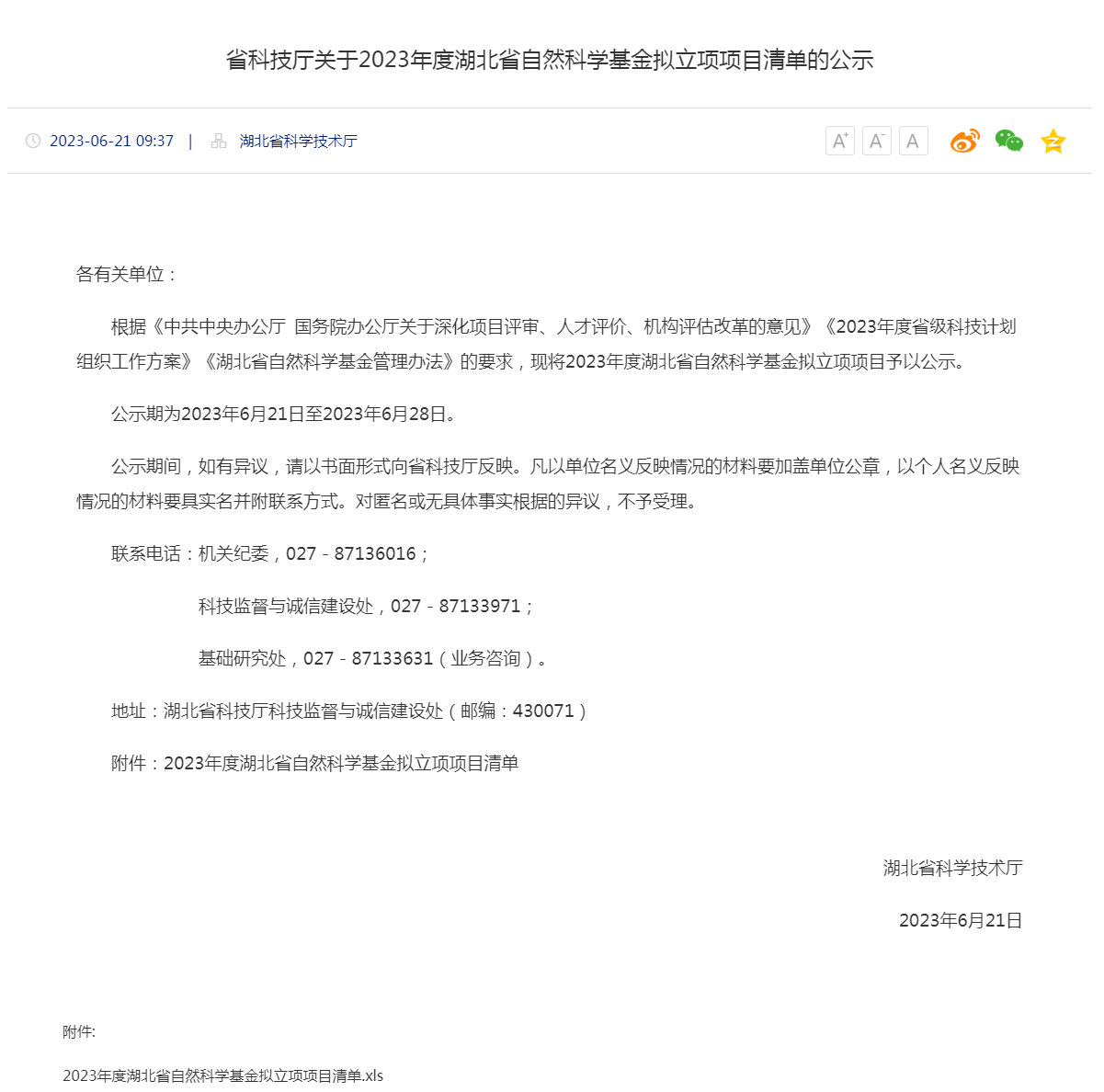 湖北省自然科学基金(以下简称省基金)立足人才培养、学科建设和源头创新,主要支持科研人才、团队和基础研究平台围绕我省经济社会发展中的重大科学问题和关键核心技术突破,开展具有前瞻性、原创性、突破性的基础研究和应用基础研究。2023年度省基金计划项目类型包括重点类项目(杰出青年项目、创新群体项目)、面上类项目(青年项目、一般面上项目)、基础研究重大项目。
