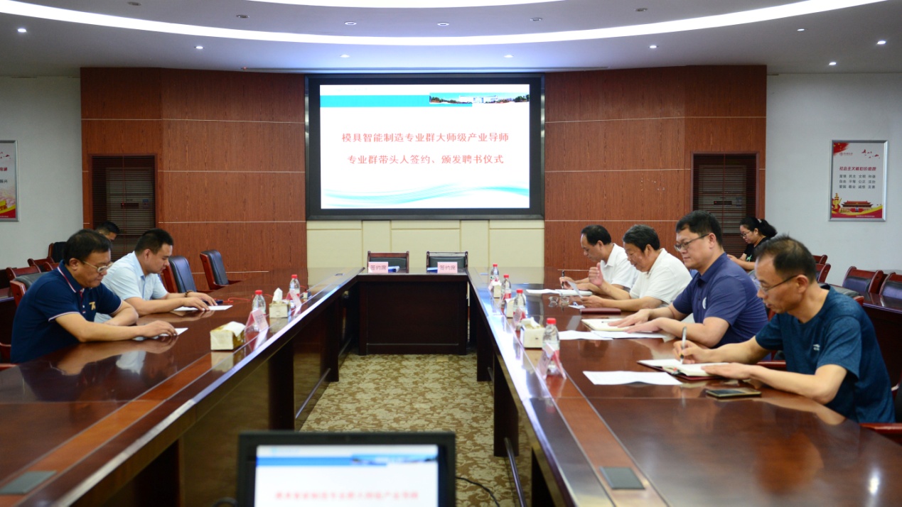本网讯(记者 何建华)3月28日,我校模具智能制造专业群大师级产业导师、专业群带头人签约仪式在图书馆一楼会议室举行,梁培志教授受聘为我校模具智能制造专业群大师级产业导师和模具智能制造专业群带头人。校长何保华、副校长杨殿生,党委教师工作部和机械工程学院相关负责人参加签约仪式。