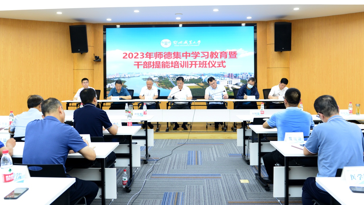 本网讯(记者 何建华)7月12日,我校举行师德集中学习教育暨干部提能培训开班仪式。党委书记万国光作动员讲话,校长何保华主持开班仪式。