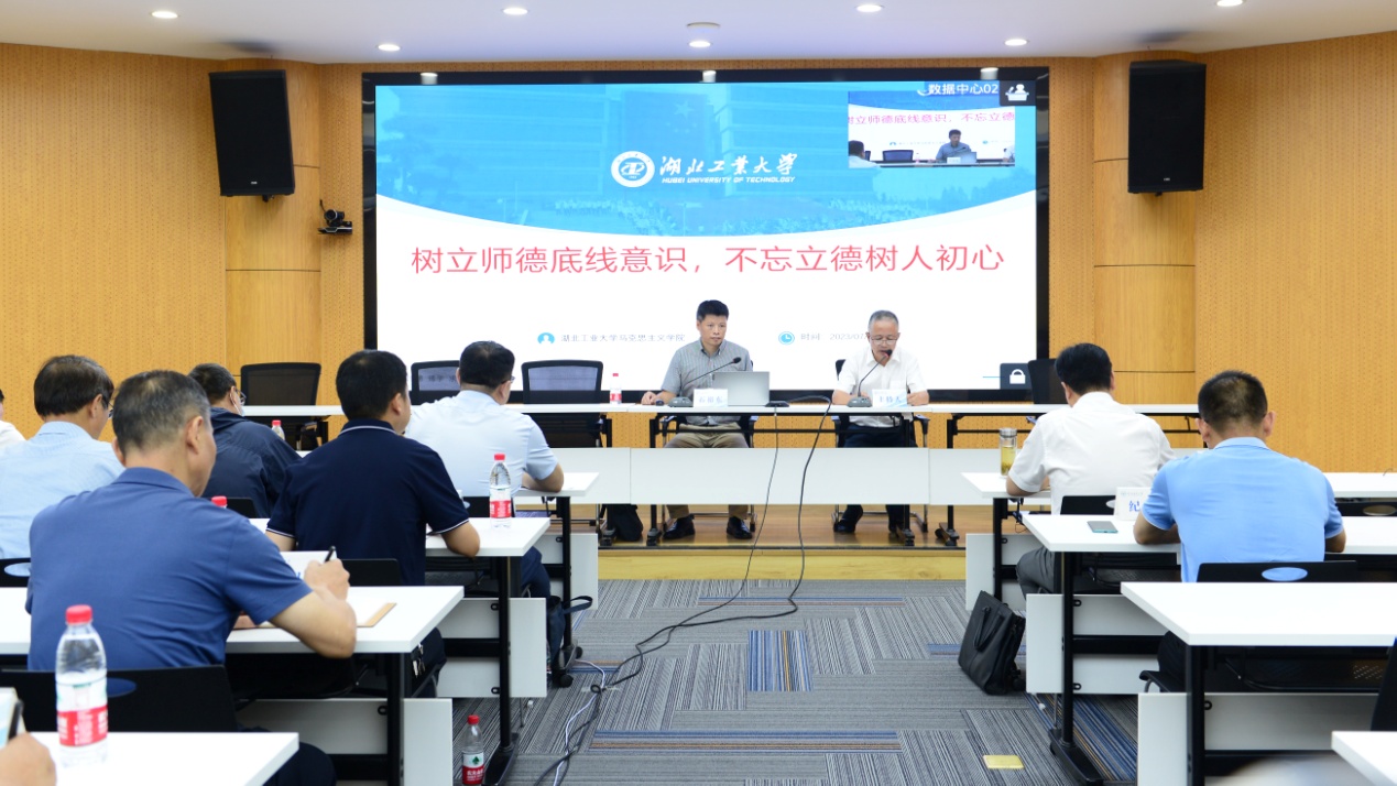 开班式结束后,湖北工业大学马克思主义学院副院长、副教授石裕东以《树立师德底线意识,不忘立德树人初心》为题,为大家进行了首场专题辅导。