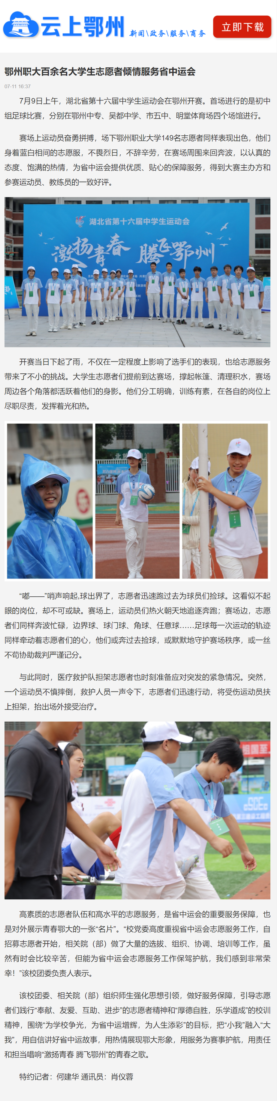 云上鄂州——鄂州职大百余名大学生志愿者倾情服务省中运会
