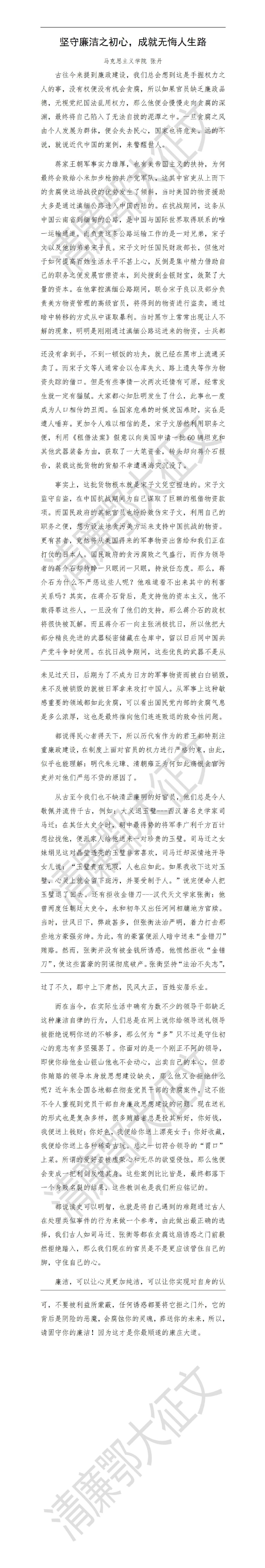 清廉鄂大征文——张丹《坚守廉洁之初心,成就无悔人生路》
