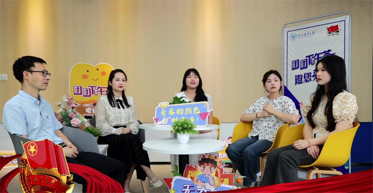 此次活动采用师生面对面交流的方式,共话“青春”。外语课部副书记姜维、医学院团总支书记汪希以及医学院学生梁娜、商学院学生谢佳欣、艺术学院学生陈琳玉作为师生代表参加此次活动。