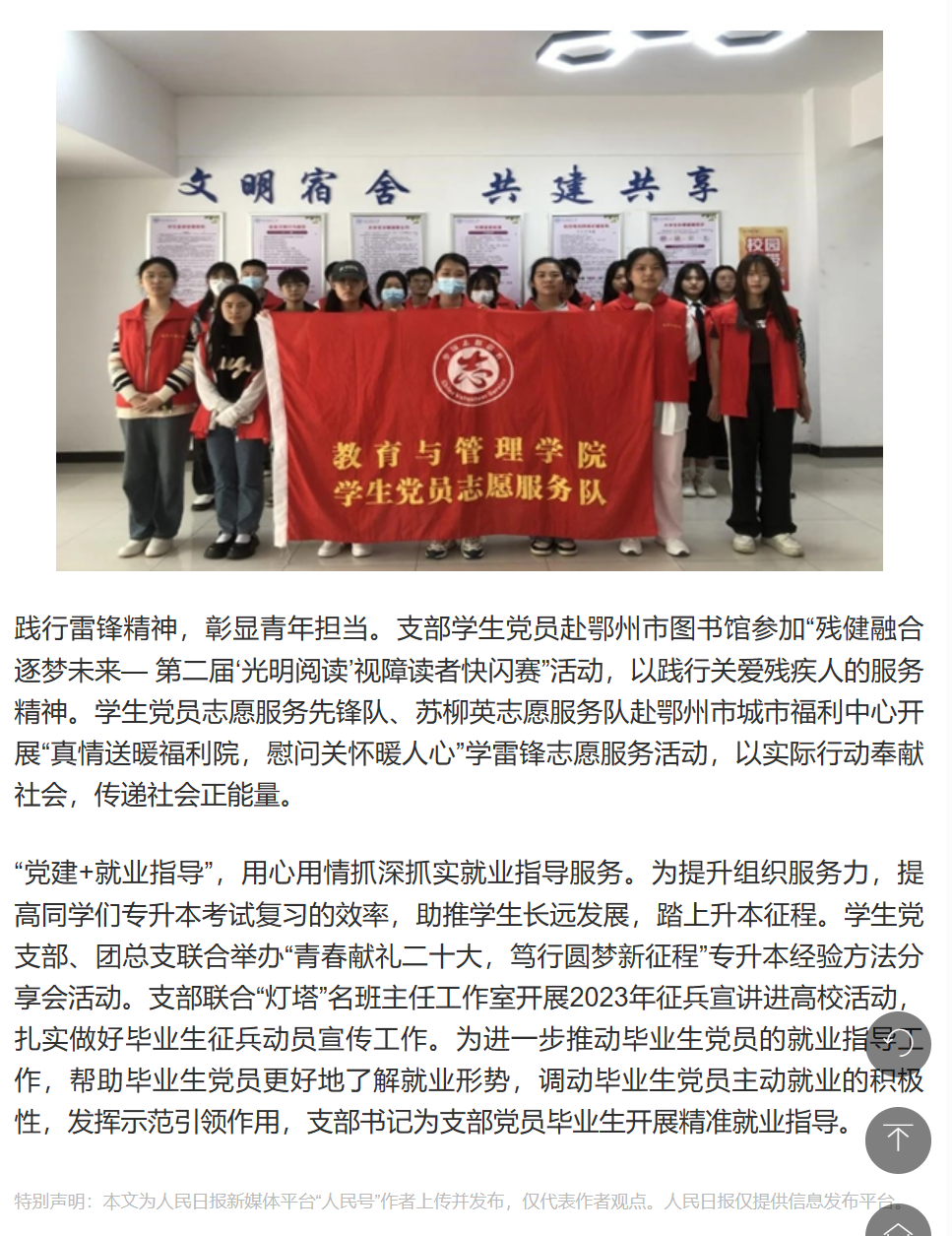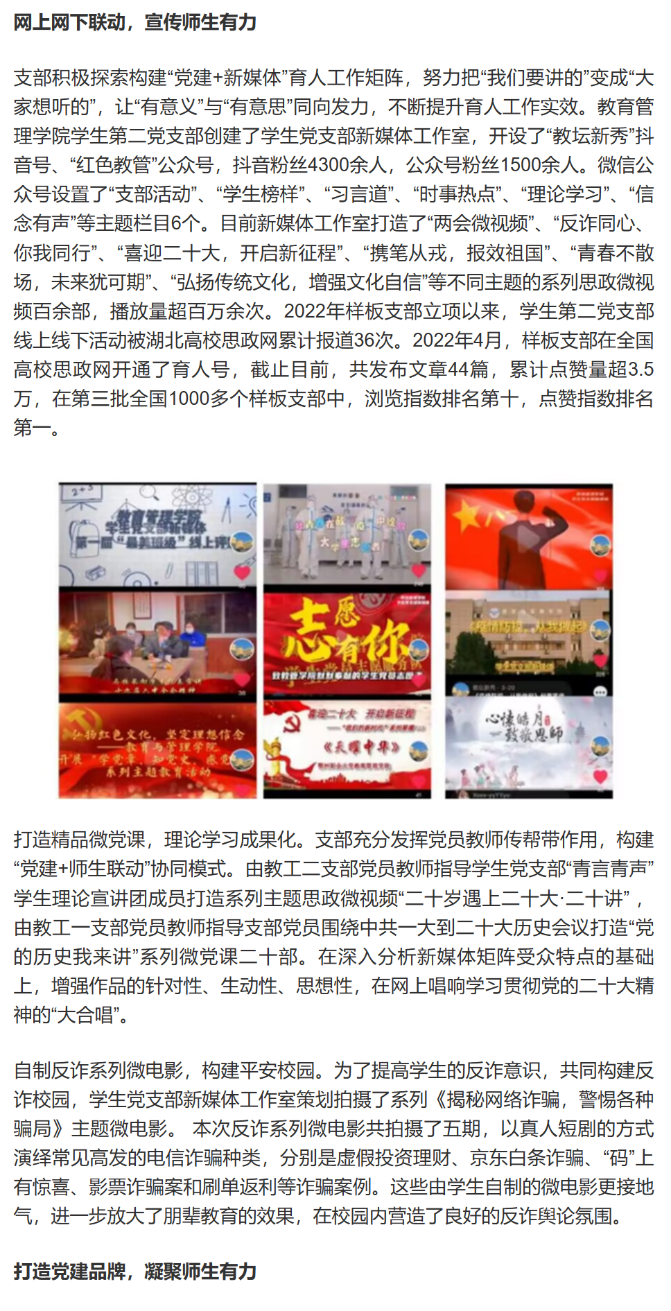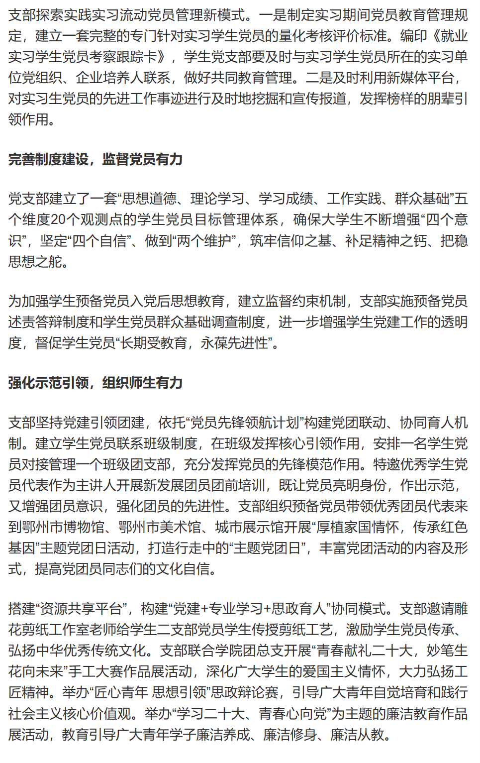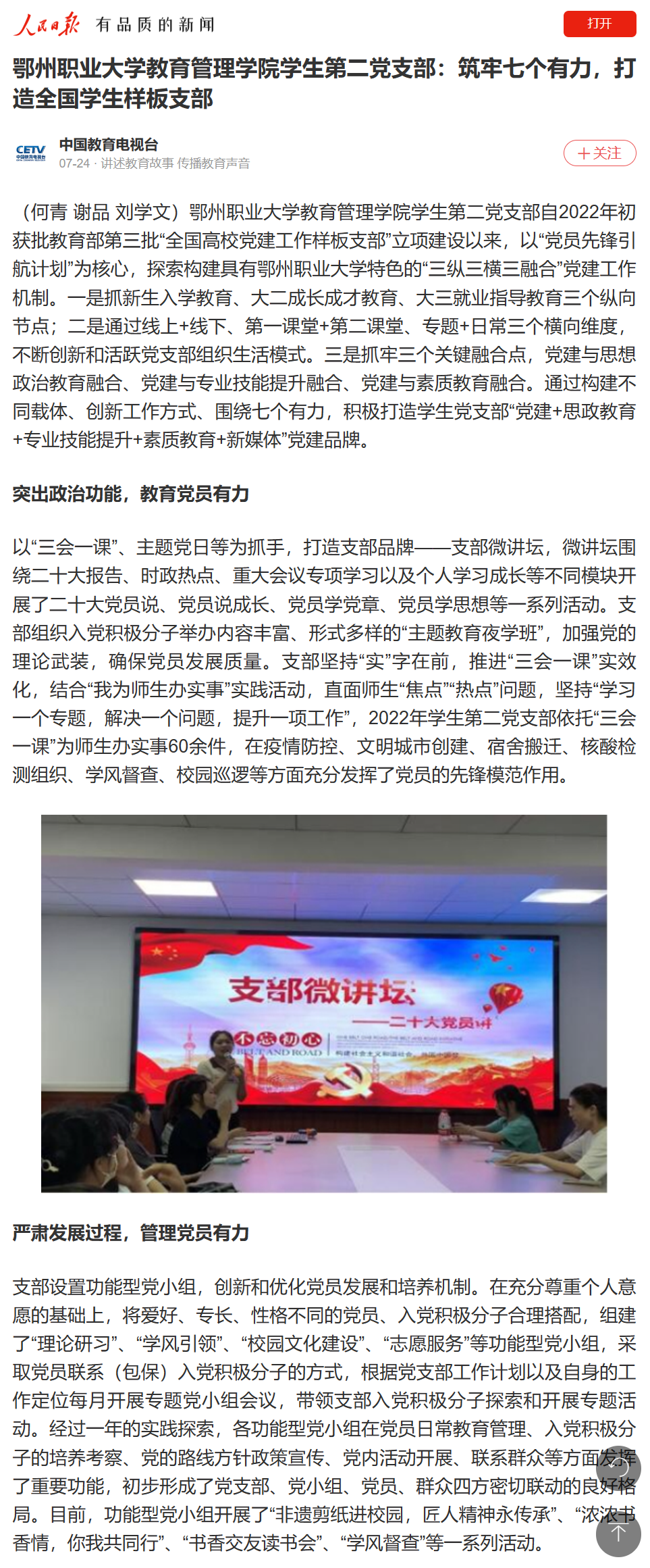 《中国教育电视台》新闻来源链接网址:鄂州职业大学教育管理学院学生第二党支部:筑牢七个有力,打造全国学生样板支部 (cetv.cn)