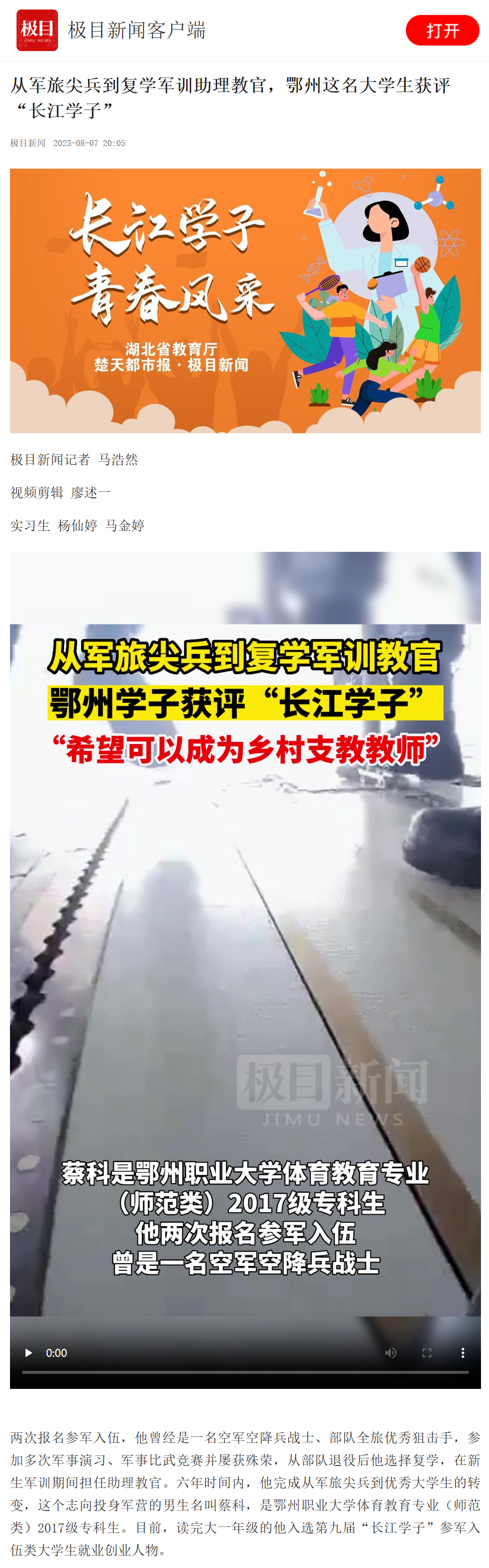 极目新闻——从军旅尖兵到复学军训助理教官,鄂州这名大学生获评“长江学子”