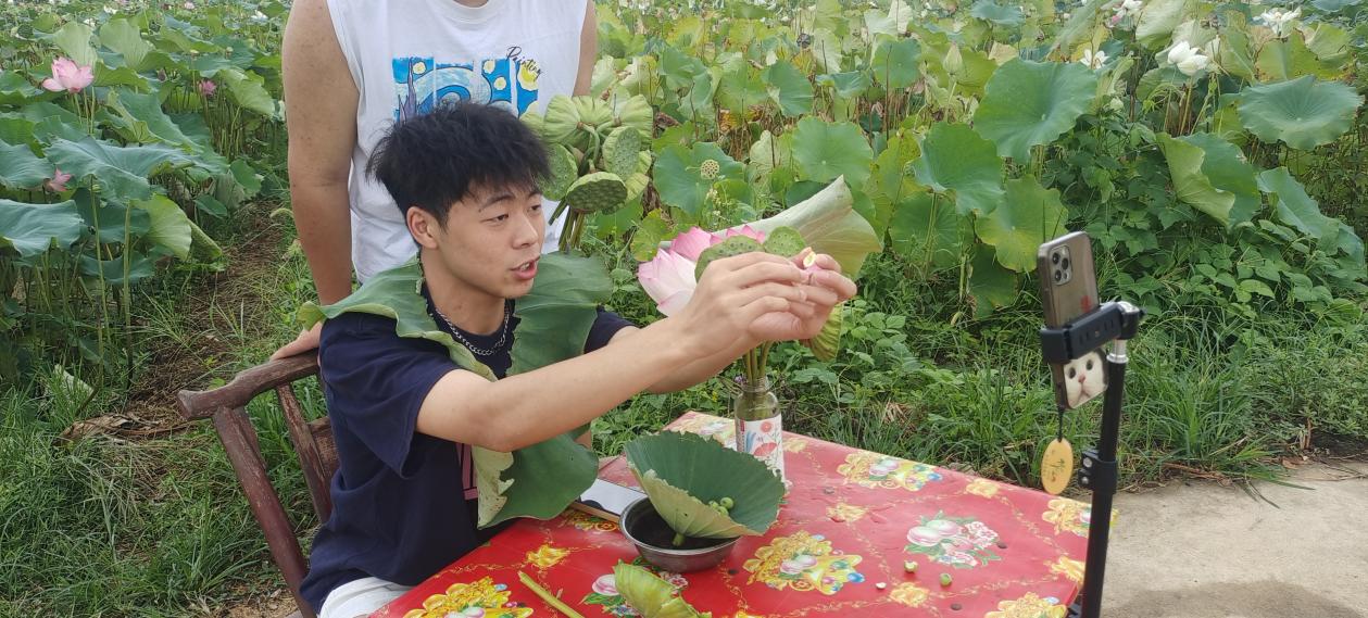 如今,直播带货早已不是什么新鲜事,但对于长期在田间地头耕作的农民来说,没有专业的指导,仍是困难重重。实践团成员们通过村委会座谈、走访农户等方式,对村里经济发展、经济作物种植及销售情况、旅游发展现状等情况进行实地调研后,纷纷化身主播,以当地特色玫瑰园、莲藕种植基地作为亮点,向广大网友大力推广当地旅游文化产业。