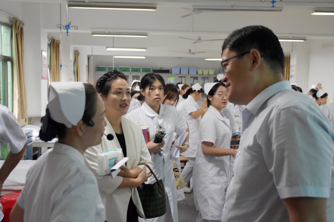何保华走进医学院22级护理十一班和十二班,分别听取了杨端老师讲授的《病理学》课程和洪汉霞老师讲授的《基本护理技术》课程。课后,何保华与授课教师和学生们进行了交流,称赞教师授课节奏紧凑,课堂氛围活跃,学生互动积极,希望授课教师进一步增强“立德树人、教书育人”的责任感和使命感,不断丰富课堂教学内容、组织形式和教学手段,提高课堂活力和吸引力;勉励同学们珍惜大学时光,稳扎稳打学好专业知识。