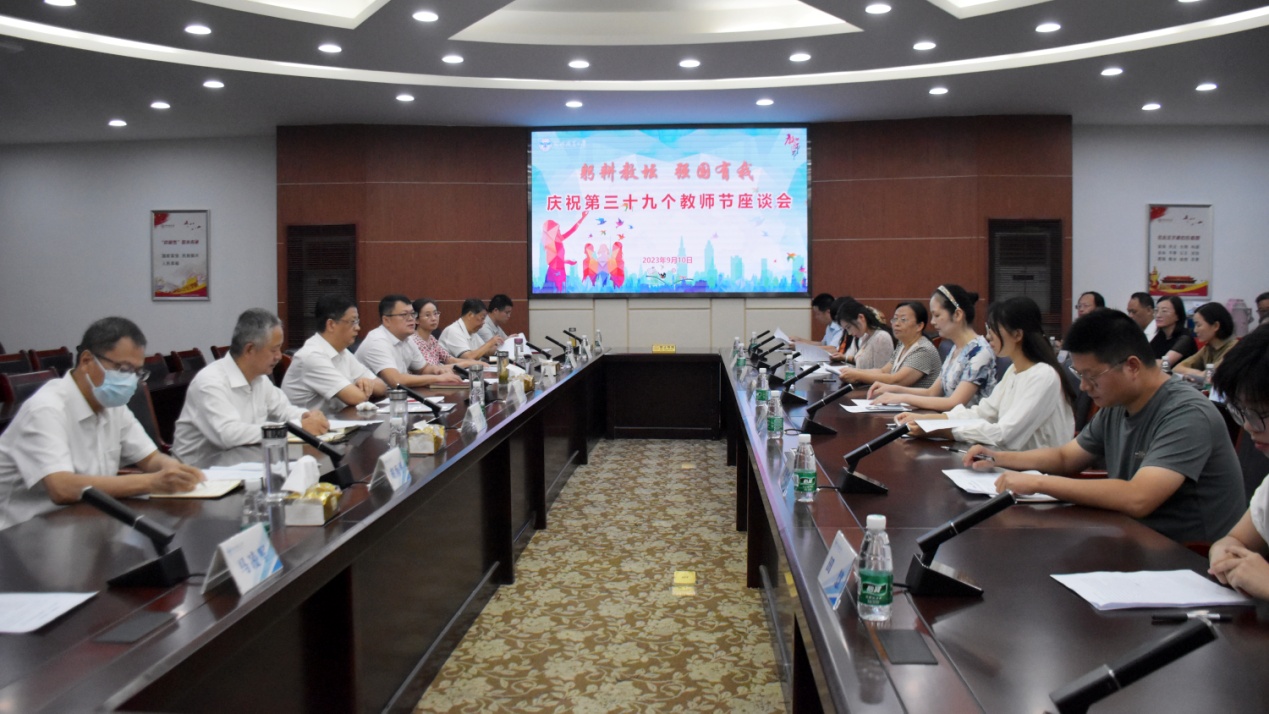 本网讯(记者 双全) 9月10日上午,我校在图书馆1楼会议室隆重举行庆祝第39个教师节座谈会,全体校领导与相关处室、院(部)负责人及教师代表参加会议。校党委书记万国光作讲话,会议由校长何保华主持 。