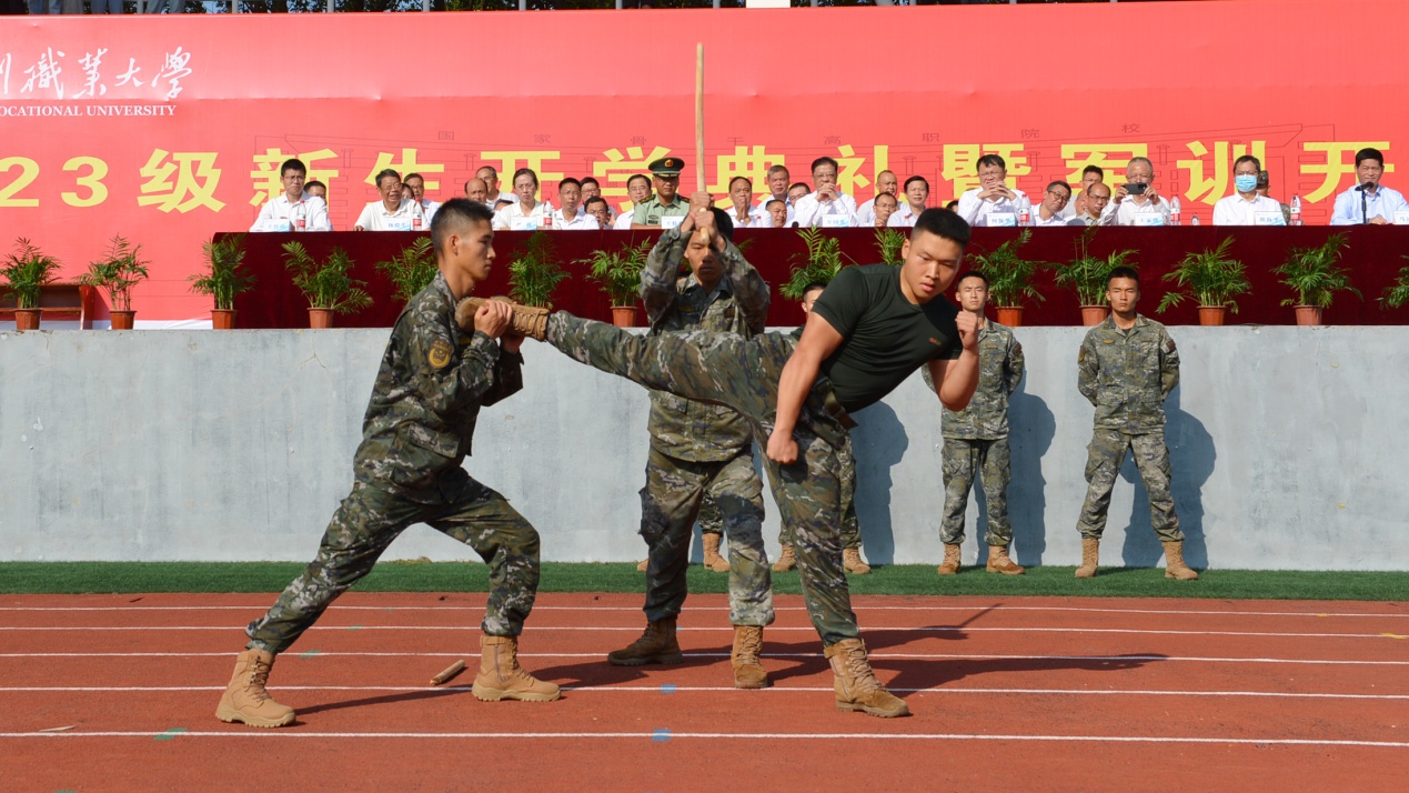 承训教官们分别展示了擒敌拳、倒功、抗击打等实战技能。制敌先机的招式、灵动多变的动作、刚劲有力而又整齐划一的演示,赢得同学们阵阵掌声和喝彩,也为参训学生树立了榜样。