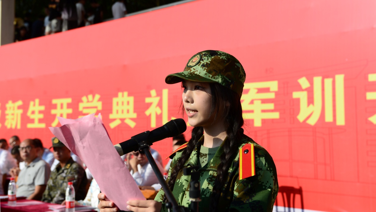 2023级医学院药学2班夏艳萍同学作为新生代表发言,表示将在军训中严格要求自己,克服困难,团结拼搏,争做有纪律、敢担当、能吃苦、肯奋斗的新时代好青年。