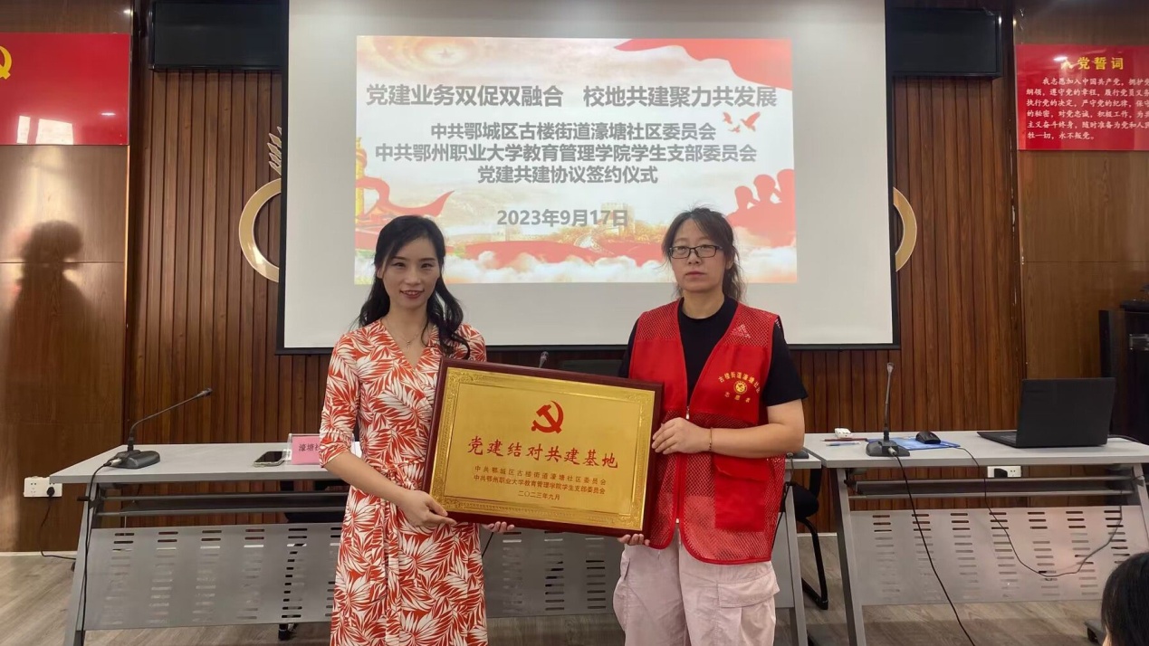 本网讯(通讯员 何青 王英鉴)9月17日上午,我校教育管理学院学生党支部与古楼街道濠塘社区党委签订《党建结对共建协议书》。
