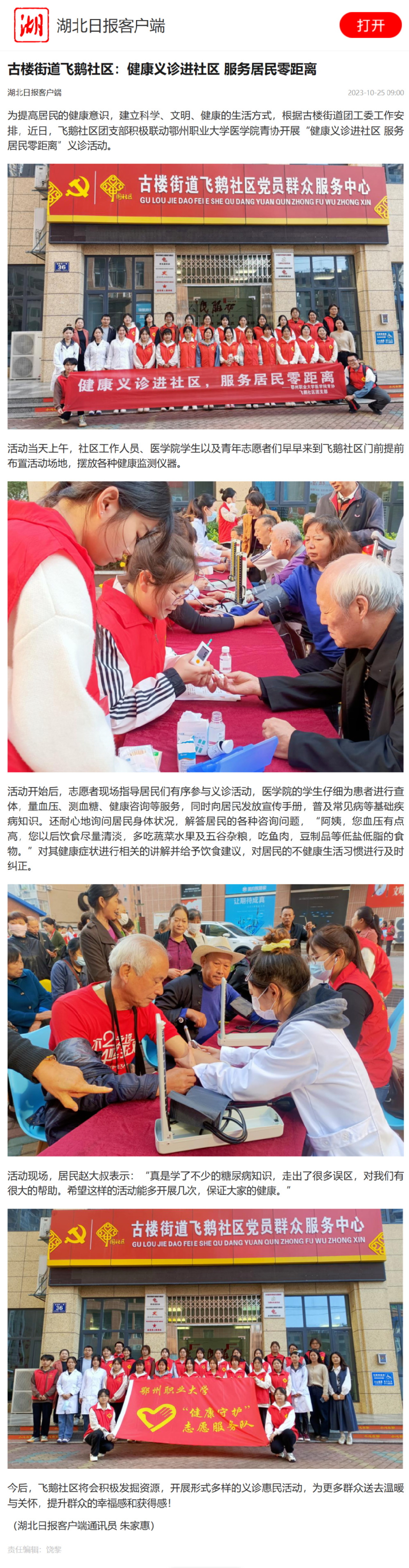 古楼街道飞鹅社区:健康义诊进社区 服务居民零距离 (hubeidaily.net)