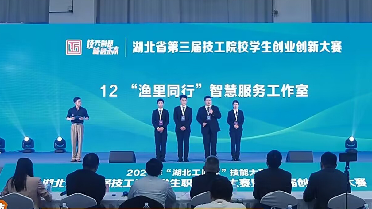 本网讯(通讯员 任红军)10月30日上午,由湖北省人力资源和社会保障厅举办的湖北省“工匠杯”第三届技工院校创业创新大赛决赛(路演)在武汉客厅·中国文化博览中心隆重举行。我校中职学院师生团队“渔里同行”智慧服务工作室参赛,并荣获大赛第三名的好成绩。