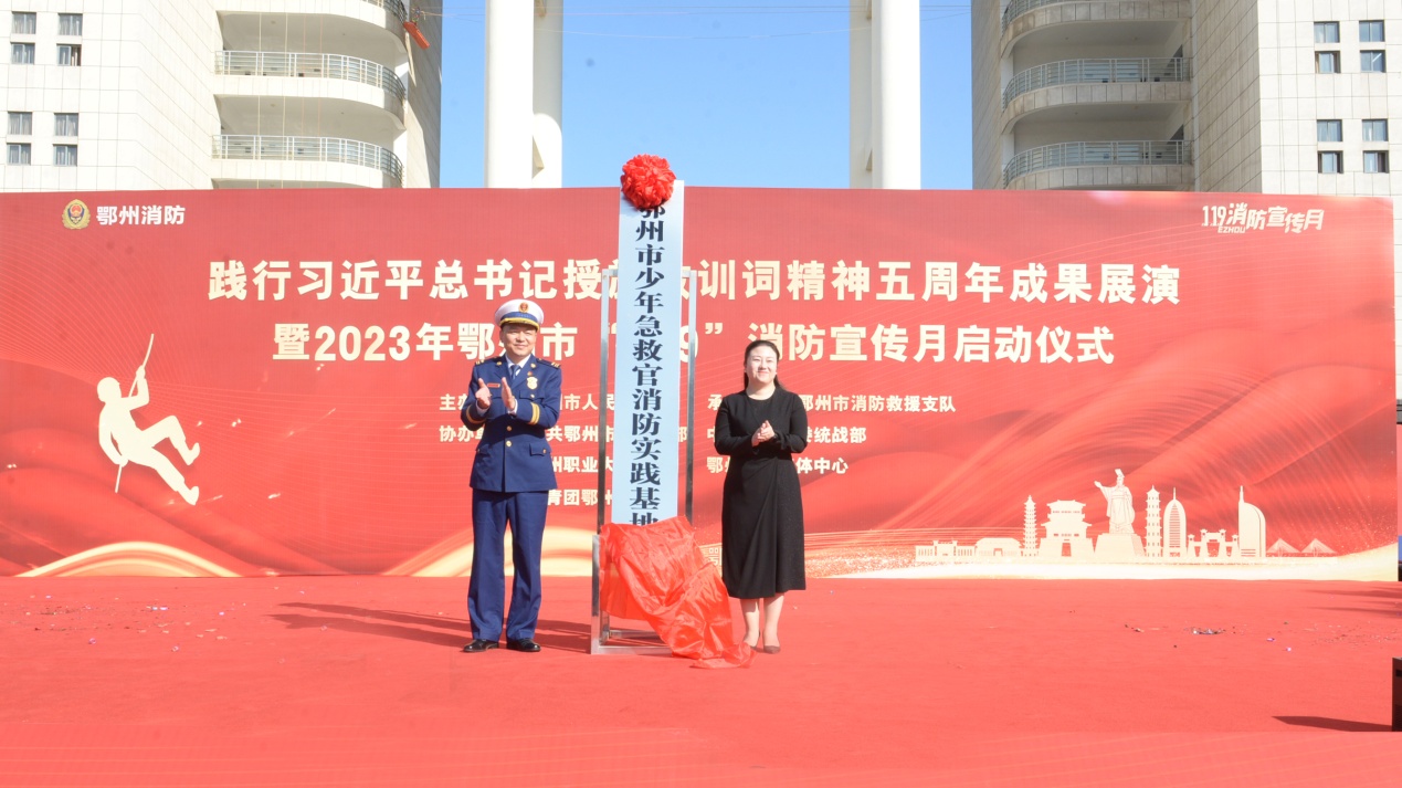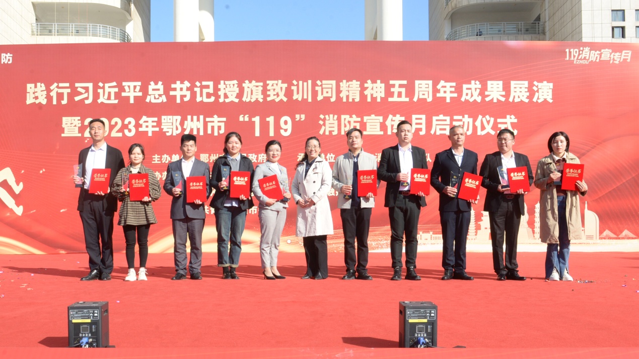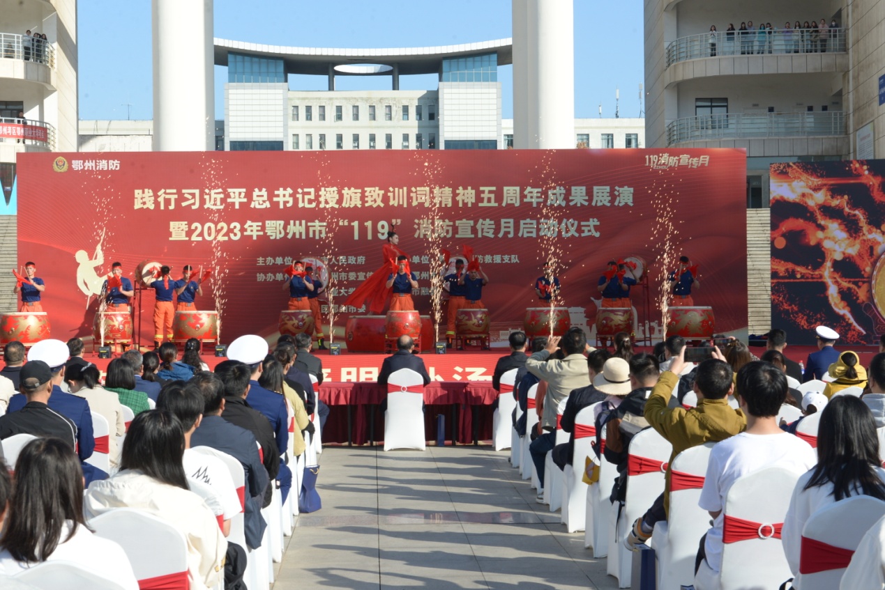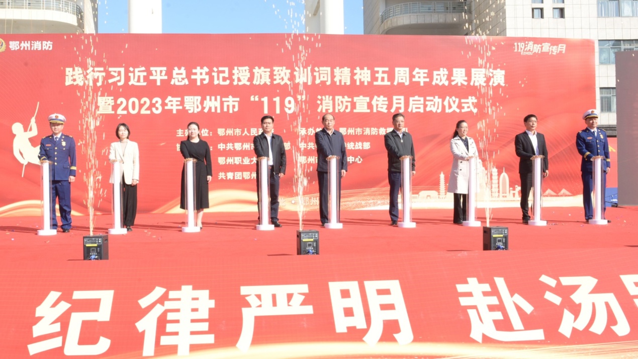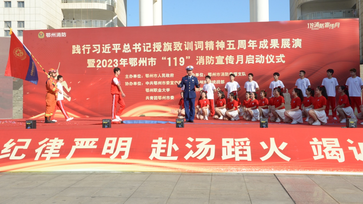 本网讯(记者 缑非凡)11月7日上午,践行习近平总书记授旗致训词精神五周年暨2023年鄂州市“119”消防宣传月活动启动仪式在我校隆重举行。市消防安全委员会主任、副市长、市公安局局长方勇出席仪式并宣布活动正式启动,校党委书记万国光参加仪式并致辞。