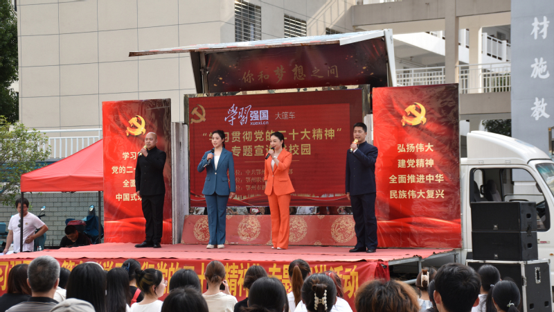 本次“宣讲大篷车”走进校园活动,以更加立体化、多样化的形式,创造性地开展党的二十大精神宣讲,为鄂大师生上了一堂走“新”又走“心”的户外“移动思政课”,使全校师生进一步深刻领会党的二十大精神的核心要义和丰富内涵,推动党的二十大精神在基层入脑入心,落地生根。