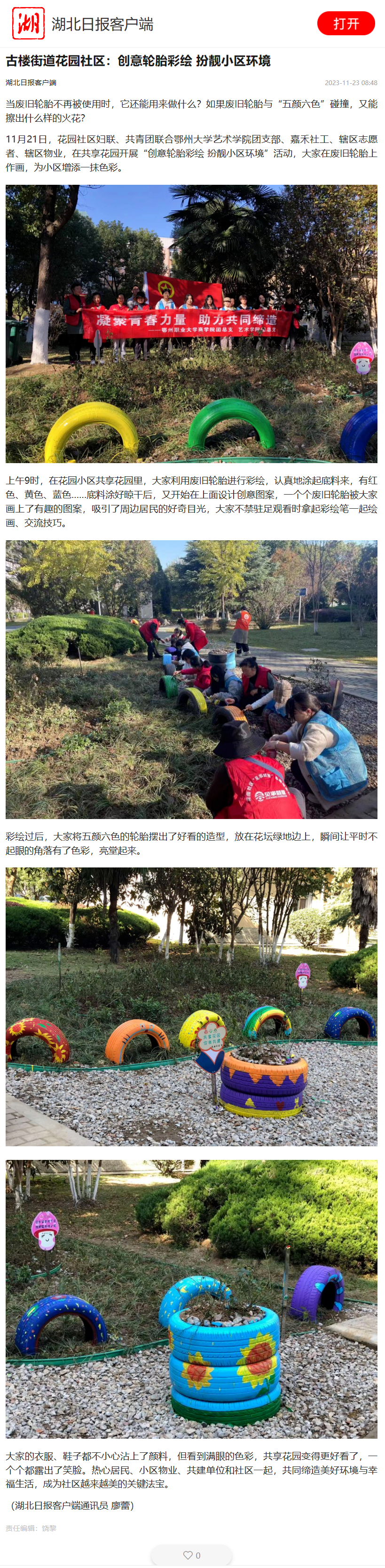 湖北日报客户端——古楼街道花园社区:创意轮胎彩绘 扮靓小区环境