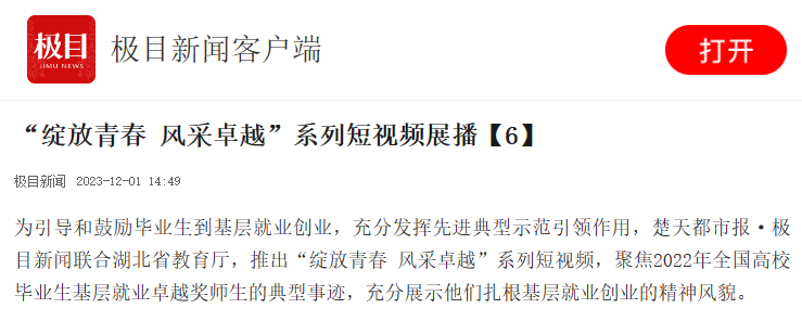 极目新闻——“绽放青春 风采卓越”系列短视频展播——我校优秀毕业生湖北农情农业公司吴金林