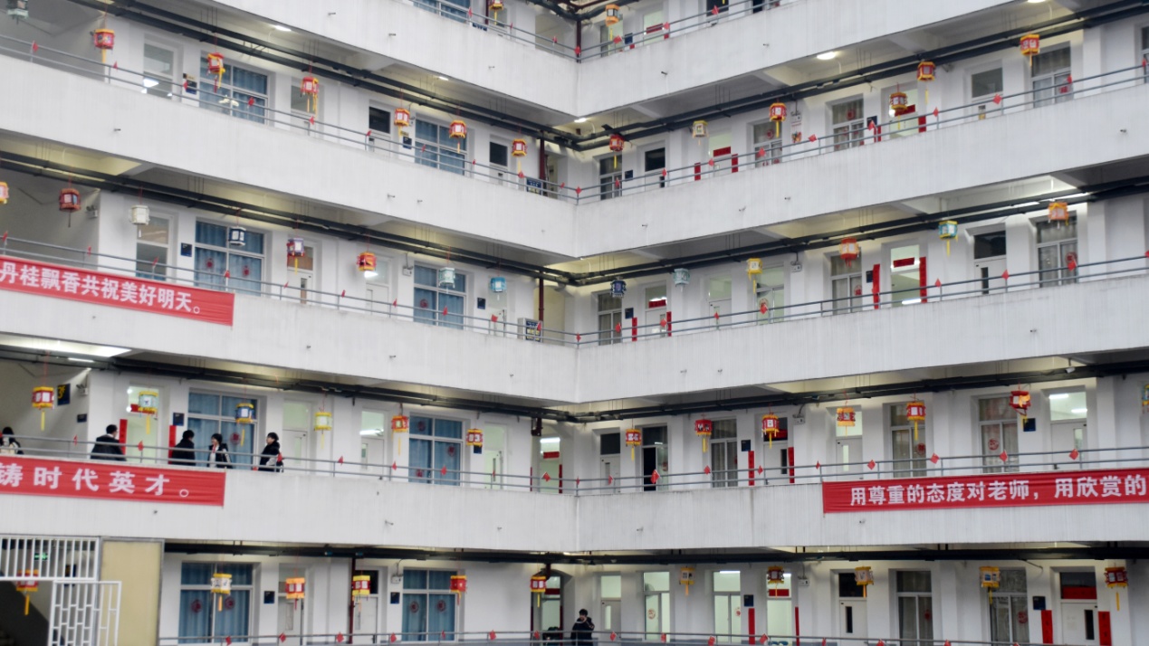12月25日,中职学院教学楼热闹非凡,师生正忙着挂花灯、贴对联。制作精巧的花灯凝聚着师生们的智慧和巧思,红彤彤的春联寄托着他们对新年的美好祝愿,“迎春接福”“高考必胜”“岁岁平安”等心愿卡传递着同学们对未来的美好期许。