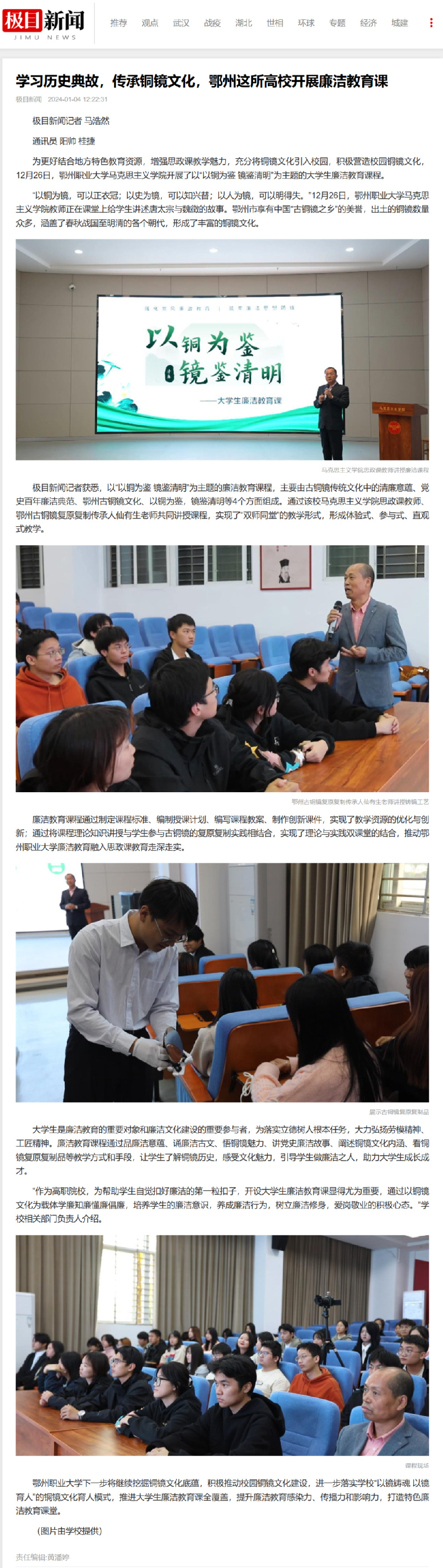 极目新闻——学习历史典故,传承铜镜文化,鄂州这所高校开展廉洁教育课