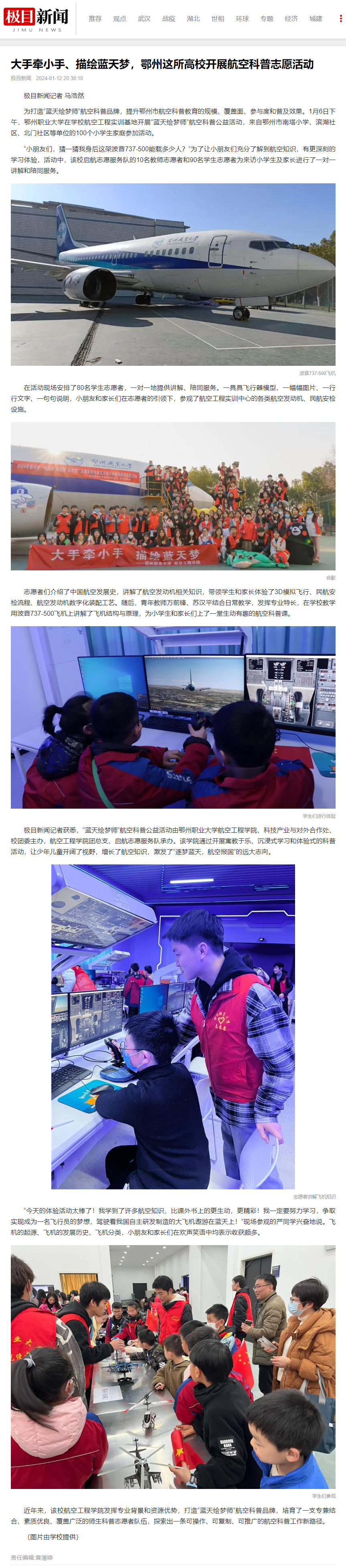 极目新闻——大手牵小手、描绘蓝天梦,鄂州这所高校开展航空科普志愿活动