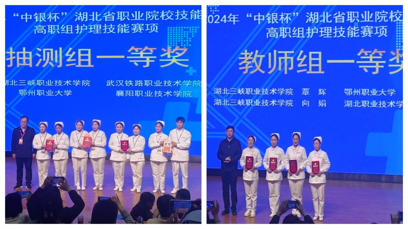 本网讯(记者 何建华 通讯员 柳淑芳)3月30日,2024年“中银杯”湖北省职业院校技能大赛高职组护理技能赛项在武汉铁路职业技术学院落下帷幕。我校医学院护理专业师生团队在该赛项中奋勇拼搏、斩获佳绩。其中,教师组李冬姣、张云霞分别获得一等奖、二等奖;学生抽测组余毅娟、陶泳希团队荣获一等奖,学生推荐组汪婷婷、刘丹红团队荣获二等奖。
