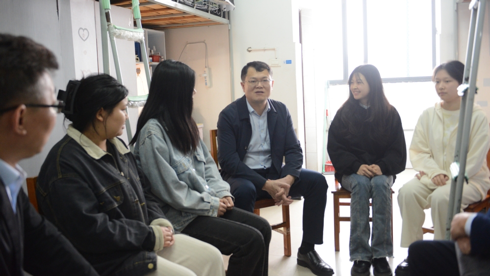 本网讯(记者 缑非凡)为深入了解新学期学生思想、学习及生活动态,4月3日下午,校长何保华深入走进东(9)栋学生宿舍,与医学院护理专业的四名大二学生展开亲切交流。