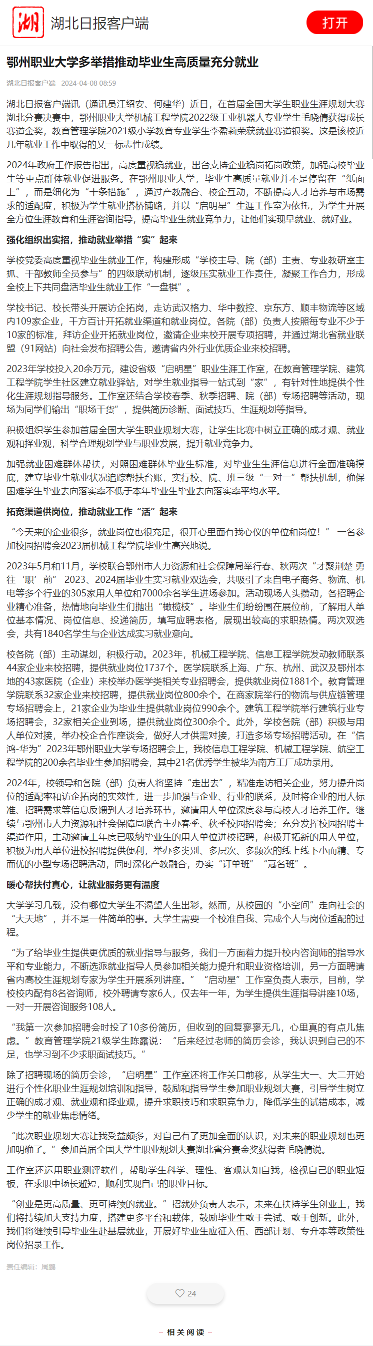 湖北日报客户端——鄂州职业大学多举措推动毕业生高质量充分就业