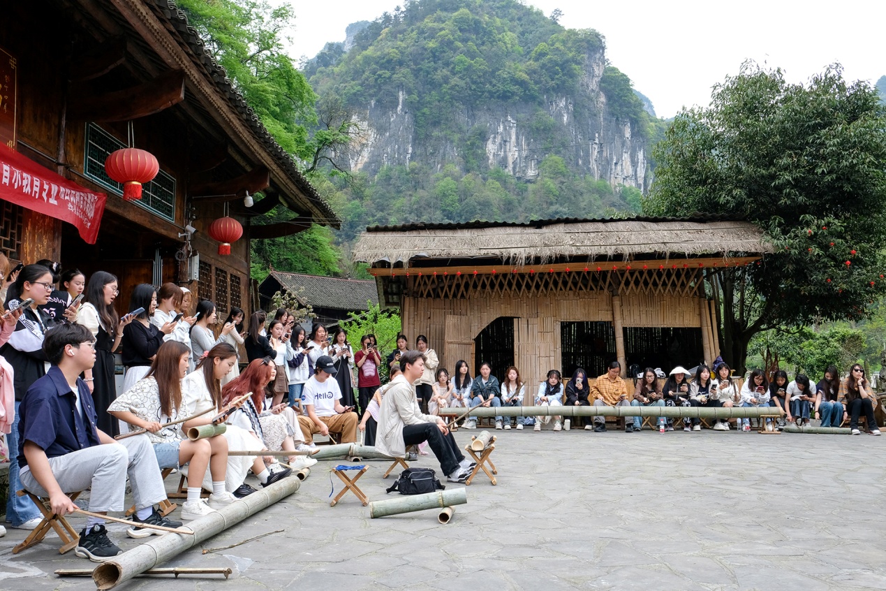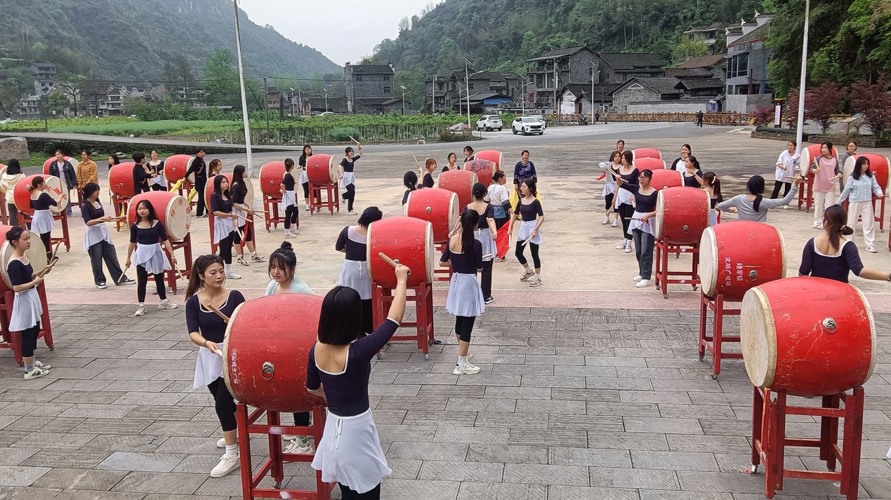 音乐教育专业学生的采风活动同样充满惊喜与收获。在湖南湘西凤凰古城、乾州古城、吉首市矮寨镇等地,同学们学习土家族非遗歌舞《摆手舞》《哭嫁歌》、苗族鼓舞“迎宾鼓”、打歌等,了解新时代苗歌的继承和发扬以及苗歌与民俗之关系、苗歌的种类等知识,激发了对民族音乐的浓厚兴趣。