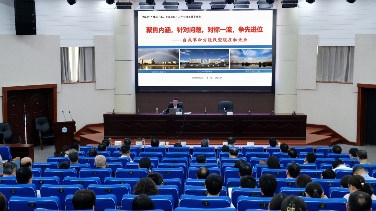 发展规划与政策法规处李璐教授以“聚集内涵,针对问题,对标一流,争先进位”为题,从正视问题与不足、坚定道路与方向、高位寻标与立标、高效达标与超标等五个方面,结合学校实际进行了认真的分析和研判,指出了存在的不足,理清了解决问题的思路和方法,为学校开展“对标一流 争先进位”三年行动提供了很好的指导和帮助。
