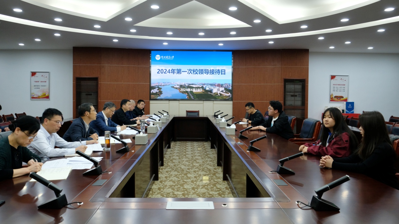 本网讯(记者 何建华 实习记者 张若岩)4月19日下午,我校在图书馆一楼会议室举行新学期第一次校领导接待日活动。校党委书记万国光出席,校党政办、学工部、教务处、后勤基建处、保卫处等职能部门负责人和10余名来自不同院(部)的师生代表参加交流活动。
