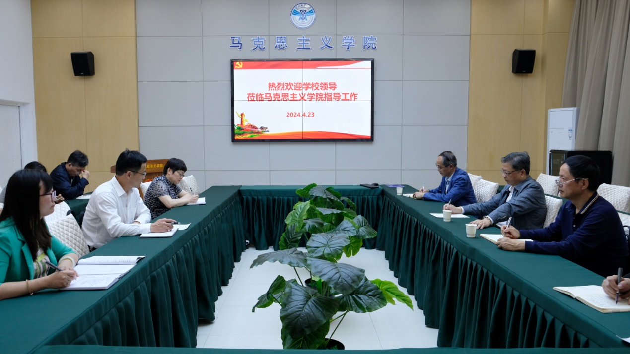 本网讯(记者 何建华 实习记者 张若岩)4月23日下午,校党委书记万国光、党委副书记王家绪到马克思主义学院开展调研并指导工作。党委组织部、宣传部负责人陪同调研。马克思主义学院班子成员及部分教师代表参加。