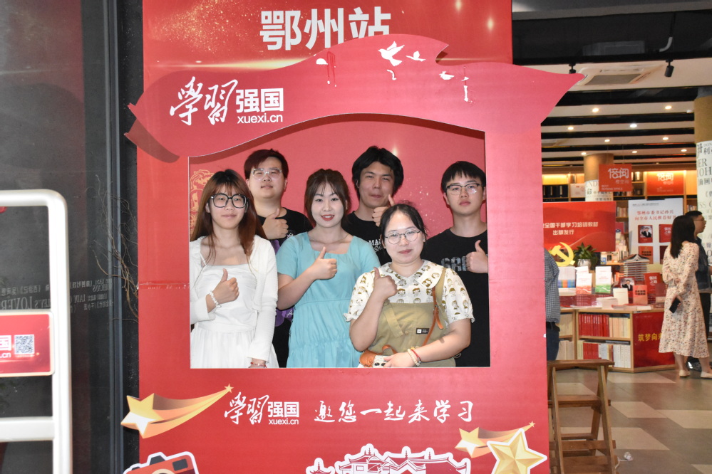 学习强国鄂州站建成于2022年10月,在讲解员的引导下,大家依次参观了拍照打卡区、强国一体机功能体验区、强国推荐书籍区、集体学习区、知识竞赛区等遍布鄂州书城内的六个区域。各功能区独具特色,充分满足读者的各种需求,提供沉浸式的学习交流环境。