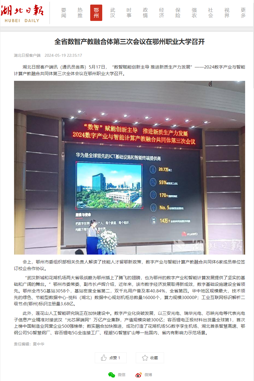 湖北日报客户端——全省数智产教融合体第三次会议在鄂州职业大学召开