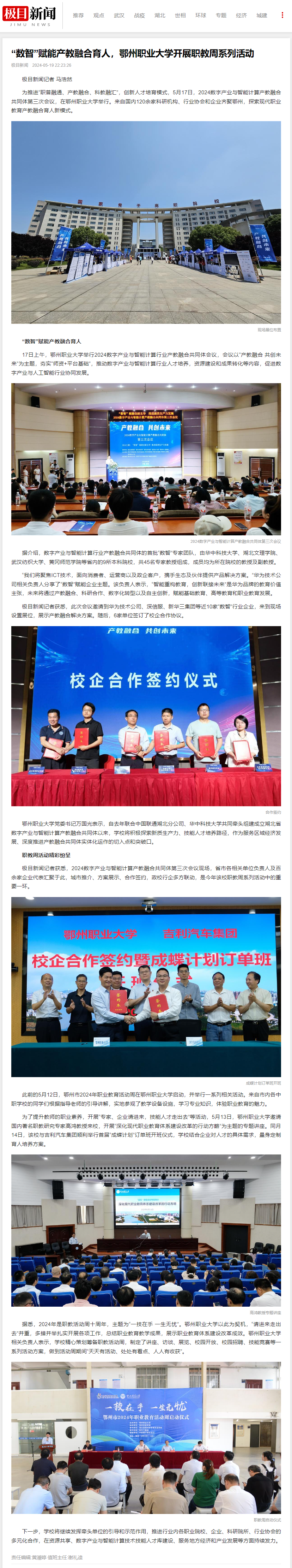 极目新闻——“数智”赋能产教融合育人,鄂州职业大学开展职教周系列活动