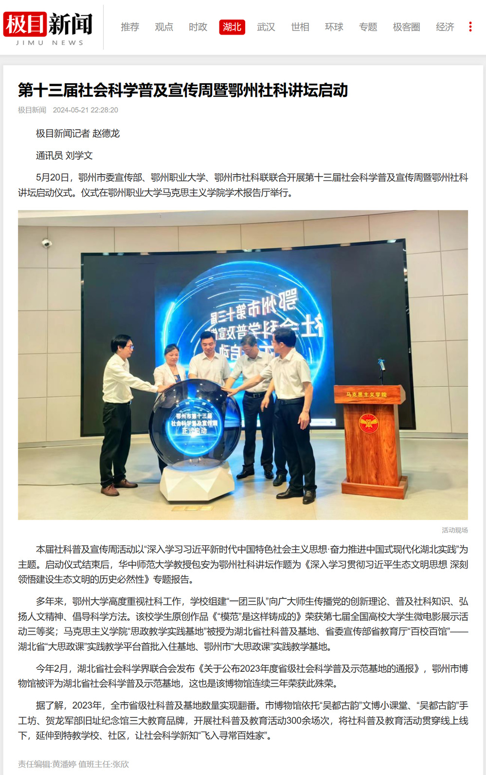 第十三届社会科学普及宣传周暨鄂州社科讲坛启动 | 极目新闻 (ctdsb.net)