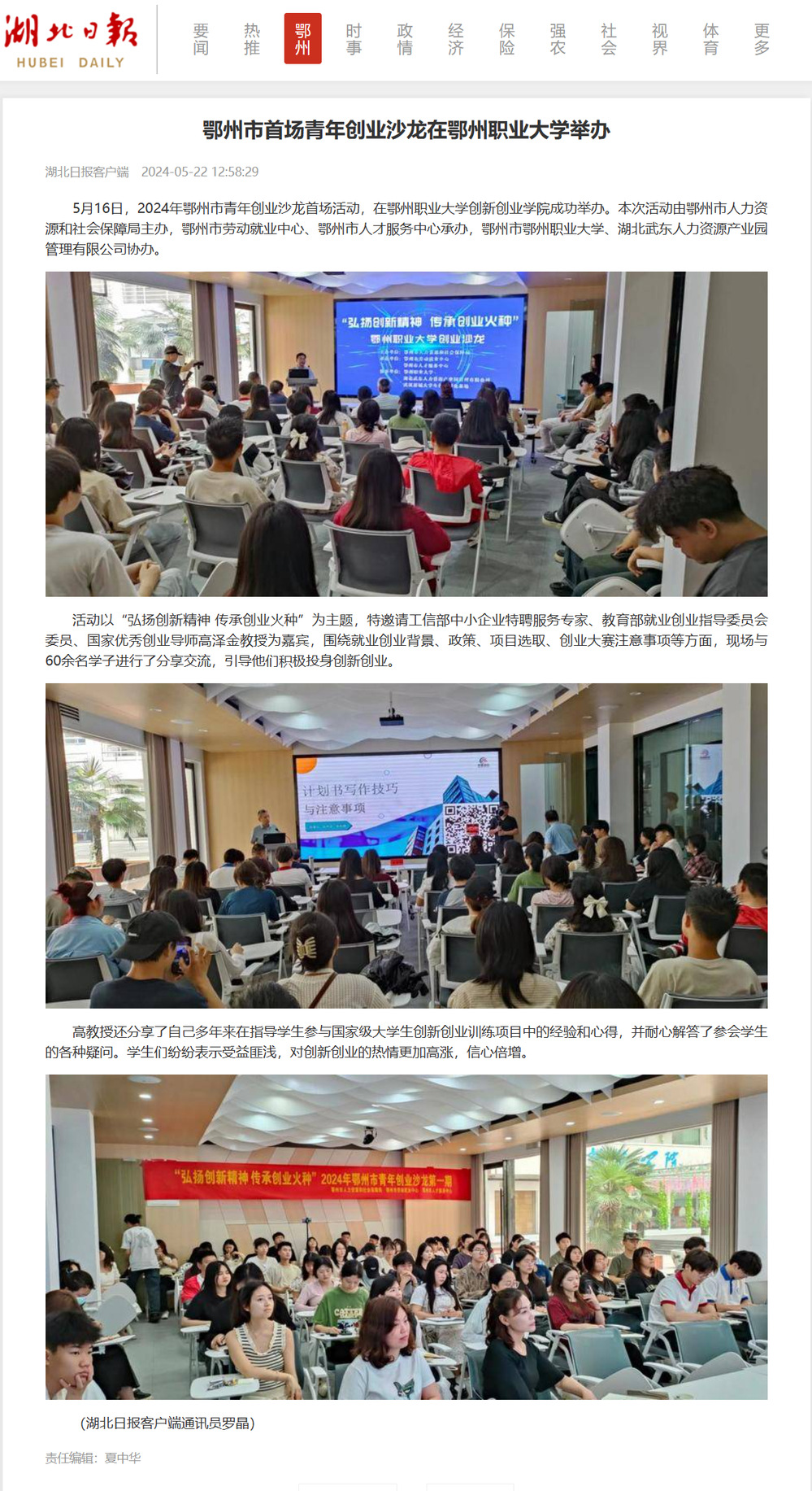 鄂州市首场青年创业沙龙在鄂州职业大学举办 - 湖北日报新闻客户端 (hubeidaily.net)