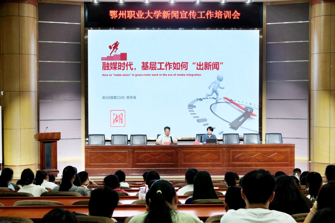 胡琼瑶老师以《融媒时代,基层工作如何“出新闻”》为题,分析了传统媒体在融媒体时代的转型和发展,介绍了湖北日报集团的业务开展情况、新闻记者的工作日常以及通讯员队伍的培训等情况,重点讲解了基层如何发现新闻、怎么写新闻、如何制作吸引眼球的新闻标题,并结合自身工作经历,列举了通讯员稿件中普遍存在的一些常见问题,鼓励大家在学校宣传工作中敏锐捕捉新闻点、善用细节和故事,让新闻报道更加鲜活。