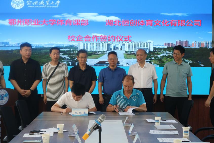 本网讯(通讯员 高国志)5月24日上午,体育课部与湖北恒创体育文化事业发展有限公司校企合作签约仪式在二号教学楼301会议室举行。湖北恒创体育事业文化发展有限公司董事长孙卓钟、总经理孙玮、副总经理姜万胜、副总经理洪四荣,校科技产业与对外合作处、教务处负责人及体育课部教师、学生代表参与签约仪式。