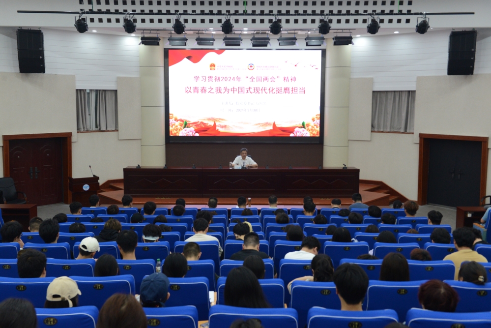 本网讯(记者 缑非凡)为深入学习宣传贯彻全国两会精神,切实提升广大团员青年的思想认识和行动自觉,5月30日晚,校党委书记万国光为团员青年作题为“以青春之我为中国式现代化挺膺担当”的主题辅导。图书馆二楼报告厅内座无虚席,学校各级团干部、2022级各班团支部书记、青年团员代表等共计300余名师生代表现场聆听。