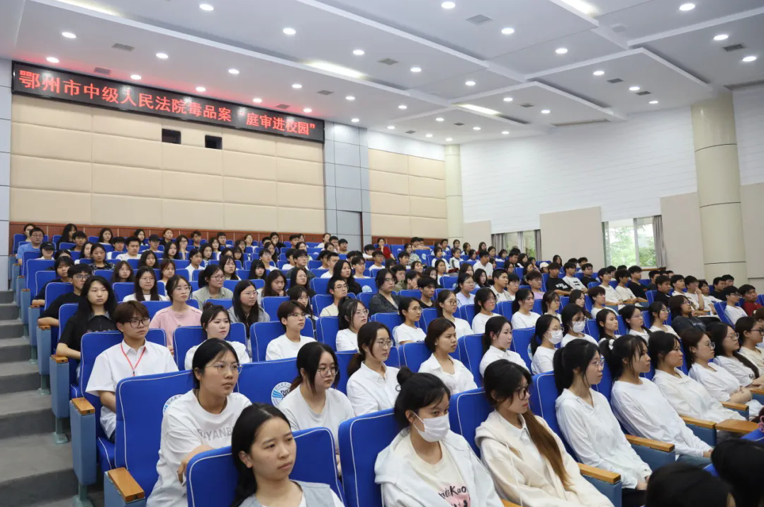 本报讯(记者 何建华)“湖北省鄂州市中级人民法院现在开庭,法警传上诉人到庭。”随着法槌敲响,一场真实的法庭审理在我校正式开始。5月30日,在“6·1”《禁毒法》实施日到来之际,鄂州市中级人民法院将“公开庭审”搬到我校,依法公开开庭审理了一起贩卖毒品案件。我校200余名青年学生现场“零距离”“沉浸式”体验了庭审全过程。