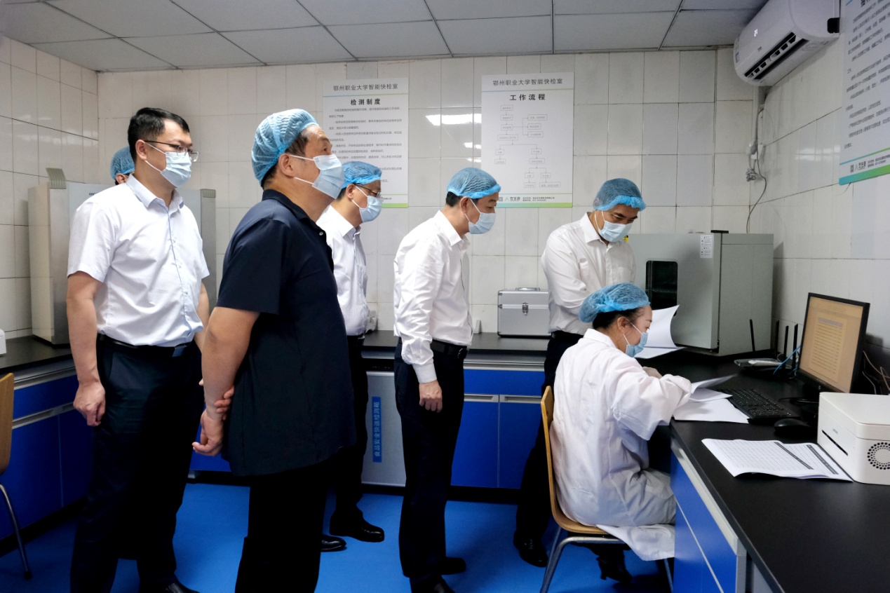 本网讯(记者 何建华)6月3日上午,全省学校食堂食品安全监管工作现场会在我市召开,我校树蕙园食堂作为示范样板点承接现场观摩学习。省食品药品安全办副主任、市场监督管理局党组成员、副局长邓仲林和各地市州市场监管局相关领导参加活动。副市长尹彬,校党委书记万国光,校长何保华,副校长王红山陪同。