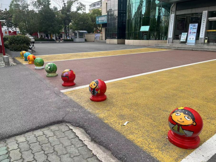 活动当天,学生们带着画板、颜料等绘画工具,在社区广场的障碍球和小区围墙上开始了创作。或调色,或打底,或勾勒,大家分工明确,协调有度,绘制了各类生动有趣的卡通图案,描绘出了心目中的美好社区形象。