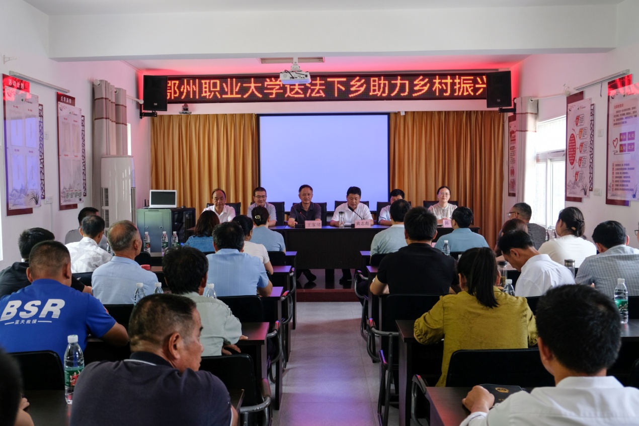 在全面推进乡村振兴事业中,法治建设一直发挥着重要保障作用。作为地方高校,我校充分发挥高校智力优势,不仅通过派遣驻村工作队、人才培养、职业技能培训等多种载体,多方面支持乡村产业振兴、人才振兴、文化振兴、生态振兴和组织振兴,也通过送法下乡活动,将法律知识融入乡村振兴实践,讲让群众看得懂、听得进、记得住、能遵守的普法宣传,引导村民遵法、学法、守法、用法,为推进乡村振兴提供法治保障。