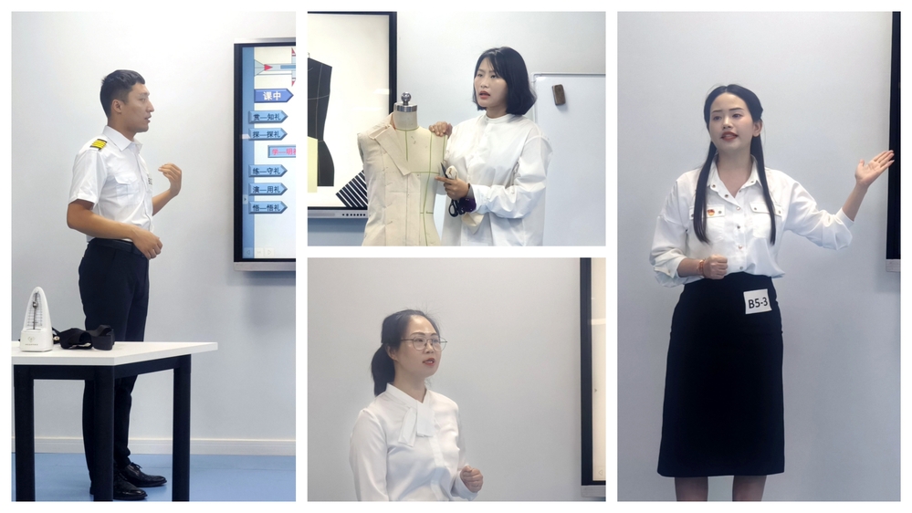 比赛现场,各参赛团队精神饱满,精心准备教学材料,教学目标明确,教学方法得当,教学过程流畅,充分展示了扎实的专业素养、优秀的教学技能和团队合作精神。