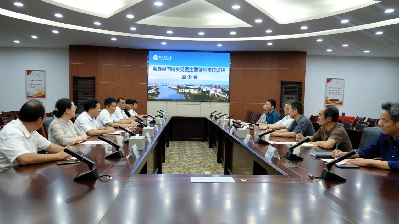 本网讯(记者 何建华)7月3日,蕲春县向桥乡党委书记童剑、副书记黄津一行7人来校调研。校党委书记万国光、副书记王家绪及相关部门负责人热情接待了来访一行。