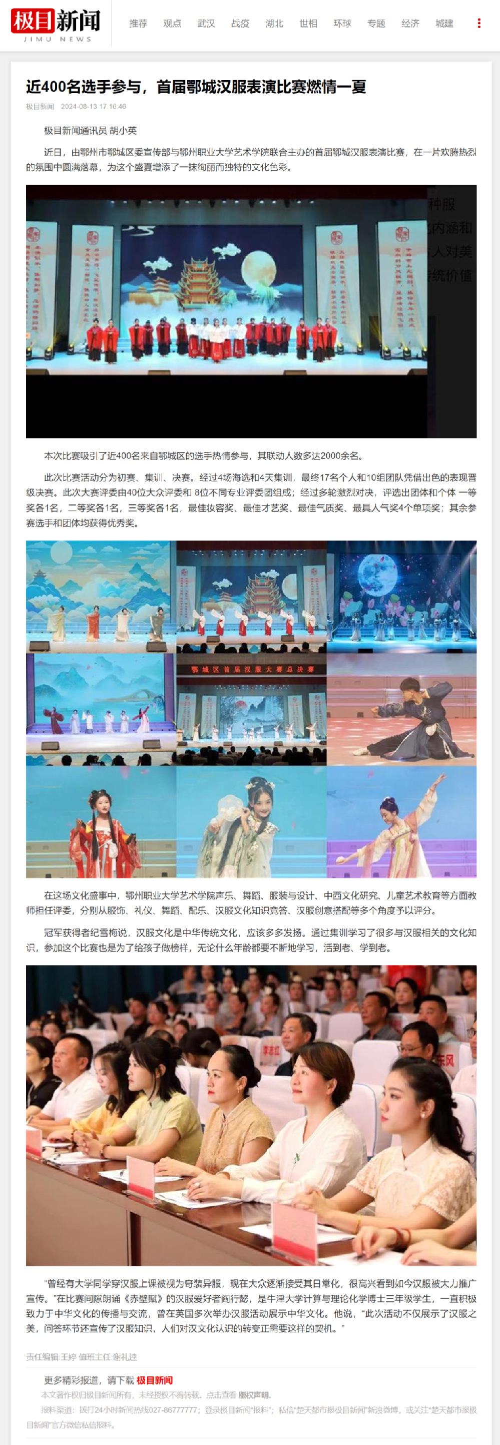 极目新闻、今日头条——近400名选手参与,首届鄂城汉服表演比赛燃情一夏
